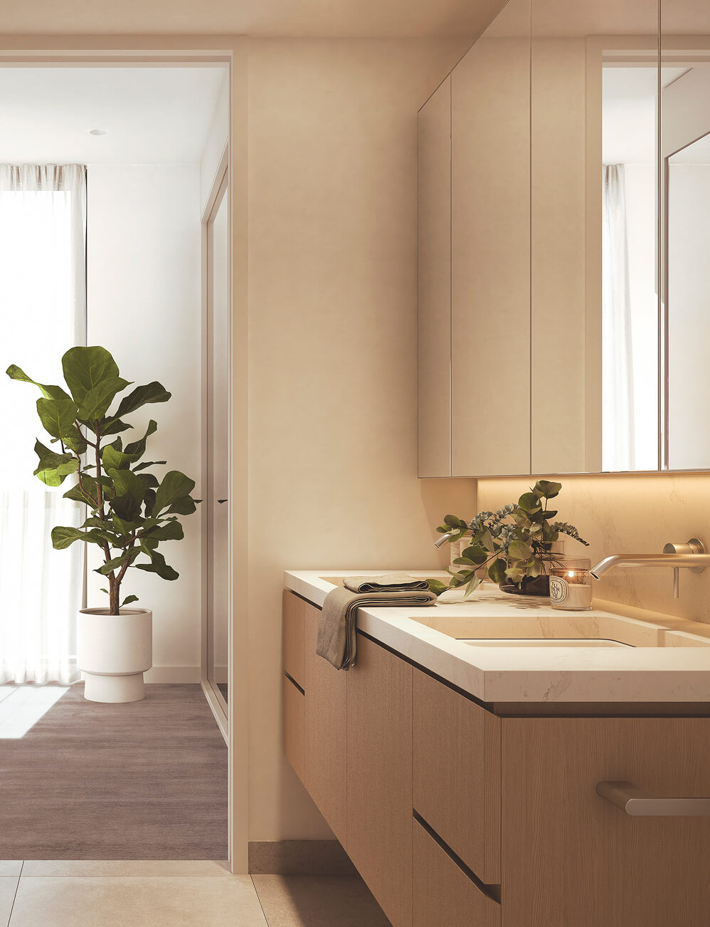 Sunlight streams through your home, balconies open to leafy parklands, and quiet corners invite reflection. At Habitat, every detail is designed for the rhythm of your life — from mornings of stillness to evenings shared with friends. Stroll shaded boulevards, pause in the café downstairs, or simply breathe in the calm of over four hectares of green space.